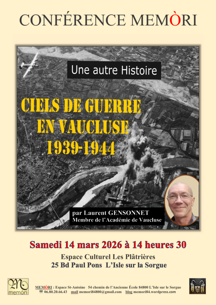Créée en 2022, l’association Memòri a pour mission de promouvoir le patrimoine local et régional du Vaucluse. Chaque mois, en dehors des vacances d’été, nous vous proposons une conférence et une sortie pour explorer les richesses de notre territoire.